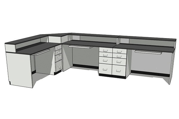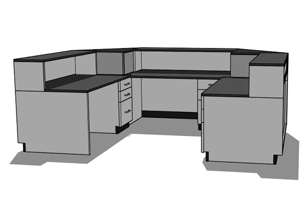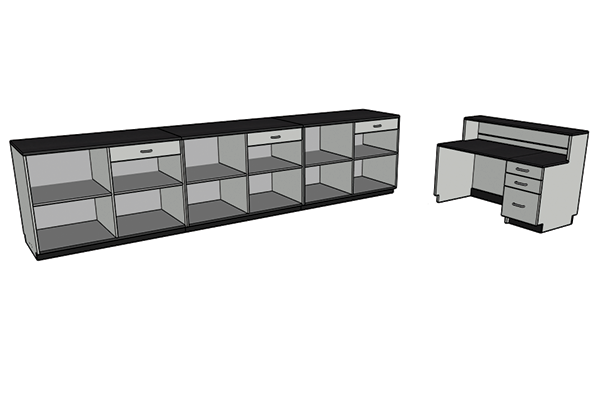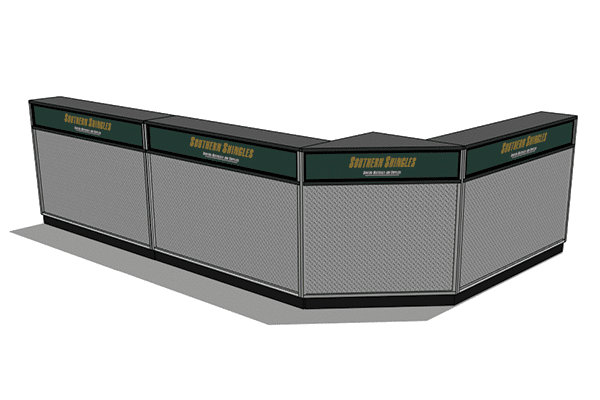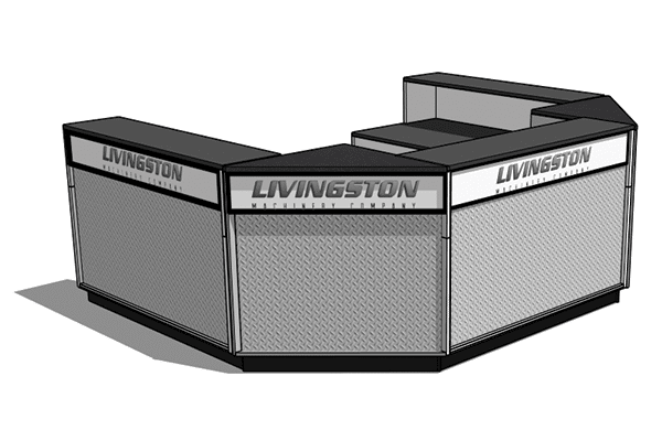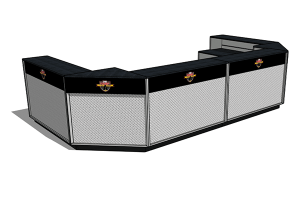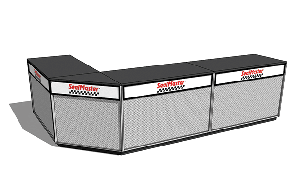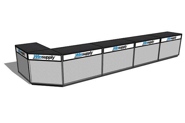 DisplayMax Big Box Sales counters are a great solution for industrial supply houses, warehouses, & customer pick-up areas. This modular system allows you to create a variety of configurations that fit your available footprint with ample work and selling space for employees. These counters are built to last and come with branding built into each cabinet face.